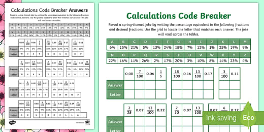 Fractions Decimals Percentages Equivalence Codebreaker For Ks2 3 4 Maths Teachwire Teaching Resource
